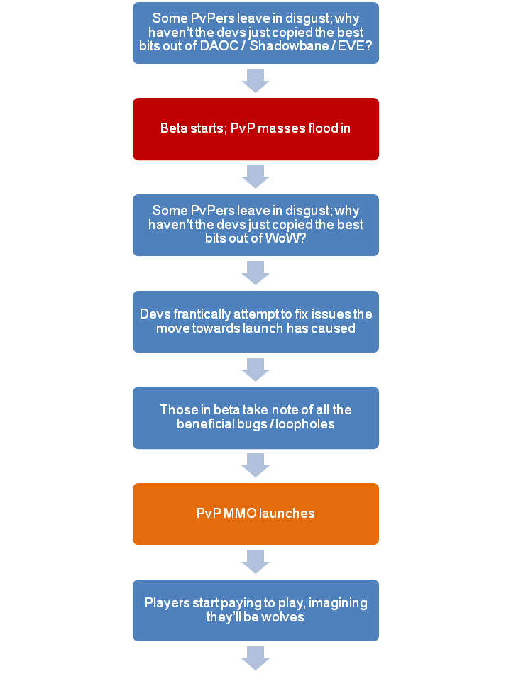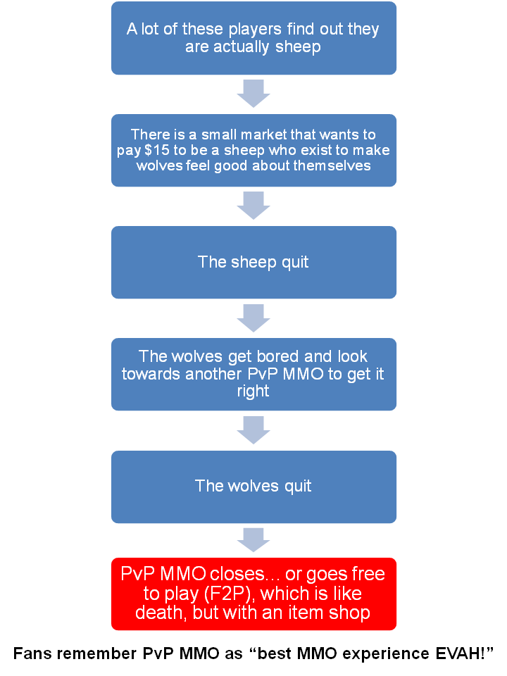 6 thoughts on “The Downward Life Spiral of the Mainly PvP MMO”