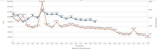 In short, CoH/V has been losing players for a long time now and Going Rogue didn’t bring them back (or back for long, anyway). Q2 2011’s results don’t change that picture – total revenue continued its downward trend. Observe (and click to enlarge):