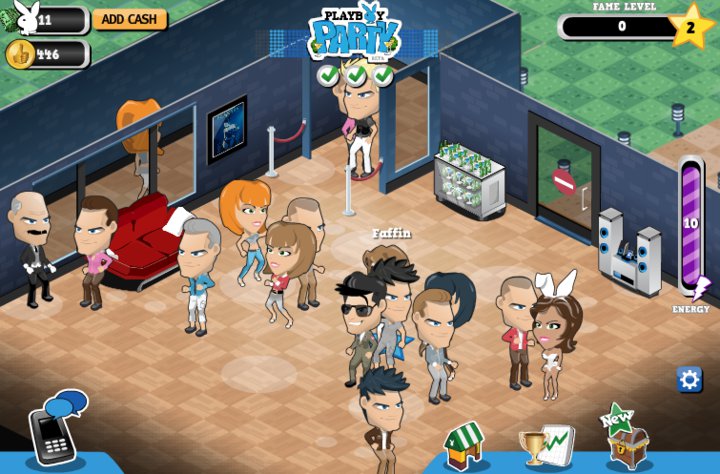 But between the launch announcement and the actual launch, things changed. For one, it was no longer a “browser-based MMO” but a “Facebook app”. And instead of a talent manager trying to get a woman up the ranks of Playmate-hood, you were instead a socialite trying to throw an awesome Playboy party.