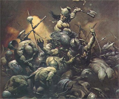 A barbarian killing a number of people.