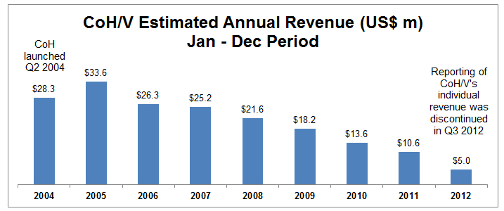 Sidenote: those two images above are some very strong support for why CoH/V was shut down. That kind of revenue decline is a pretty brutal trend.