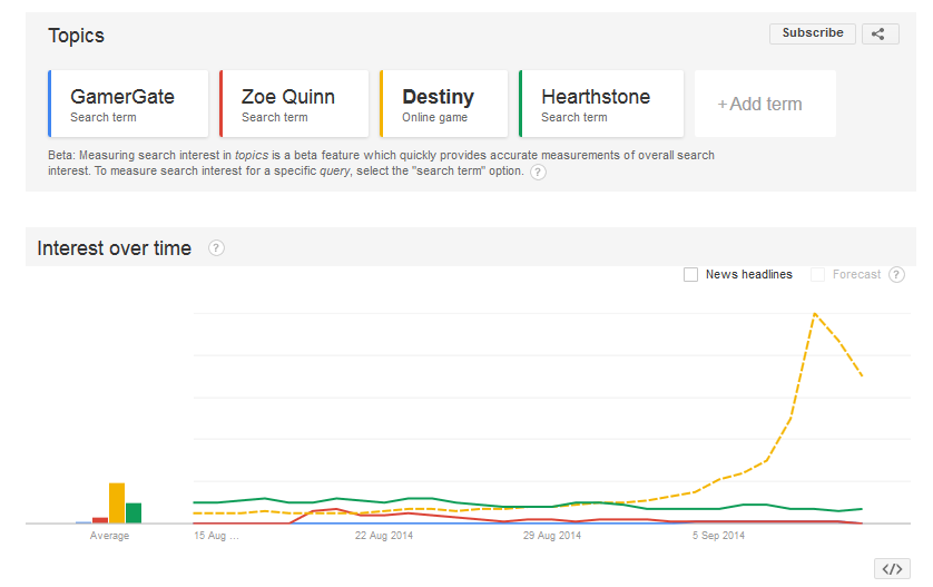 In the ongoing fight for the soul of gaming, most gamers care more about Destiny or Hearthstone. Fair enough. (Image sourced from: Google Trends)